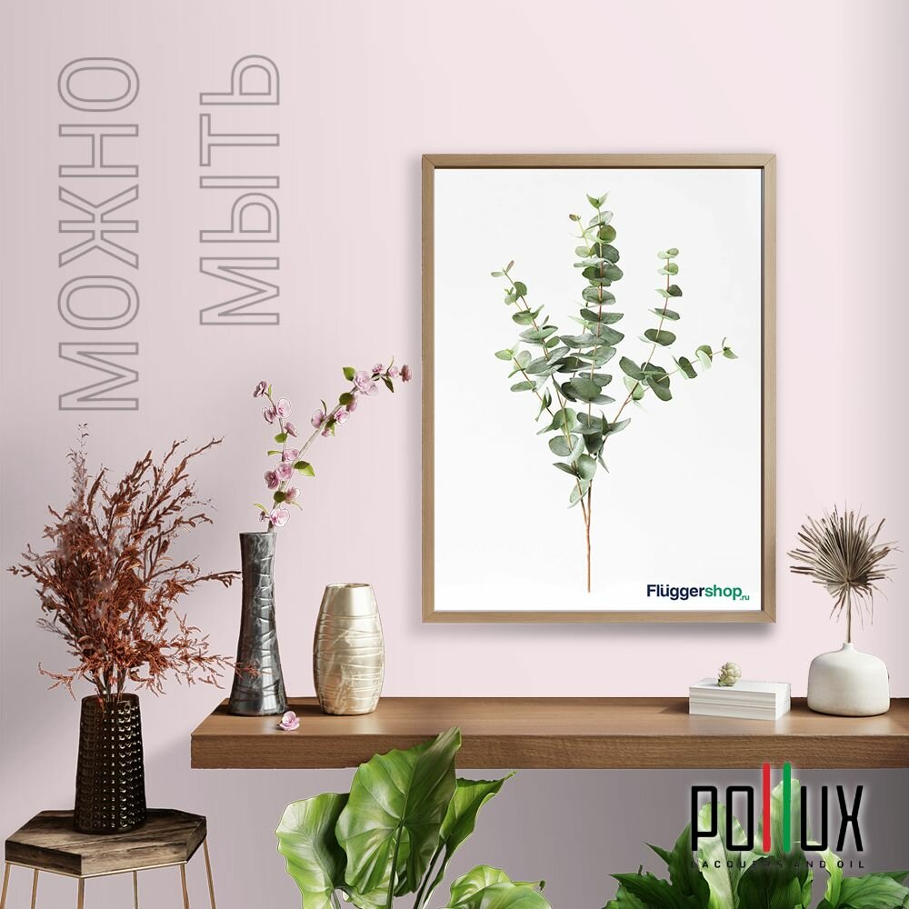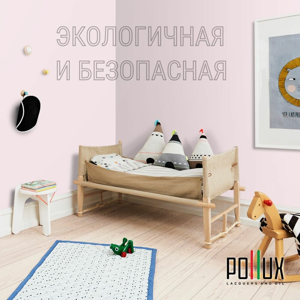 Краска моющаяся интерьерная для стен и потолков, Pollux INTERIOR без запаха, быстросохнущая, акриловая, матовое покрытие, цвет NCS S 0603-R20B, 1л.