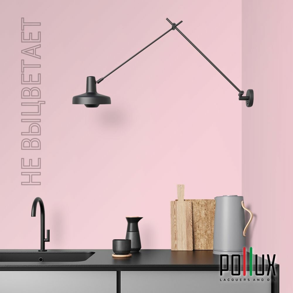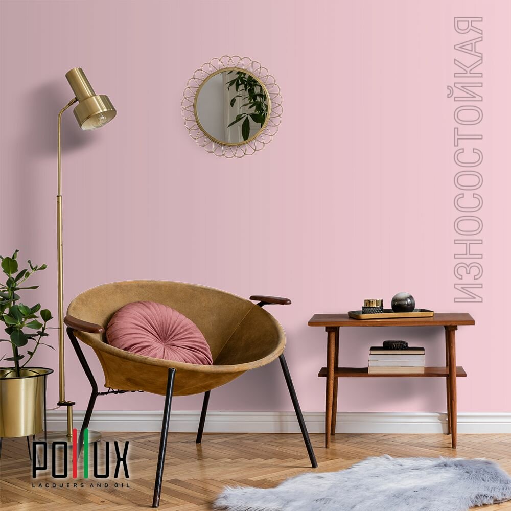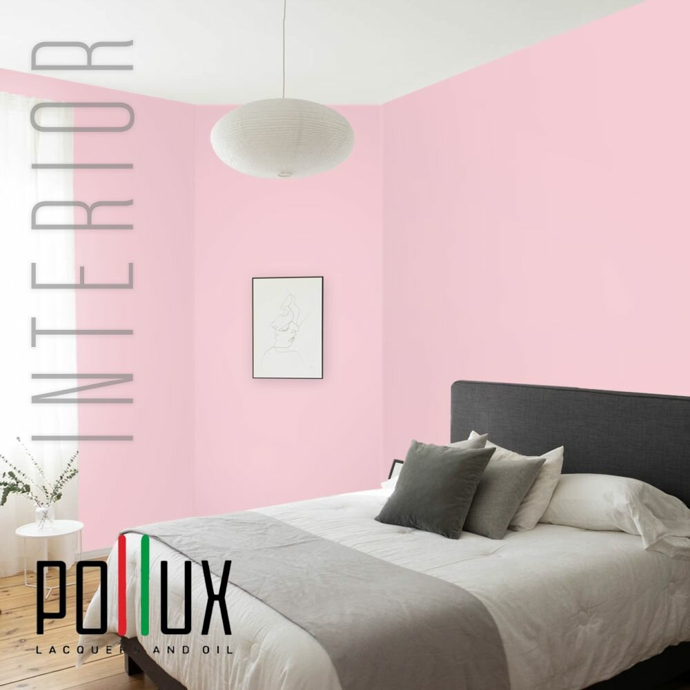 Краска моющаяся интерьерная для стен и потолков, Pollux INTERIOR без запаха, быстросохнущая, акриловая, матовое покрытие, цвет NCS S 0603-R20B, 1л.