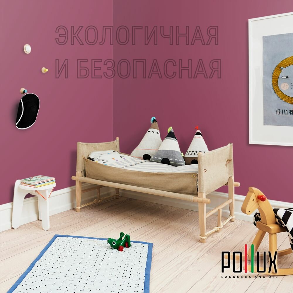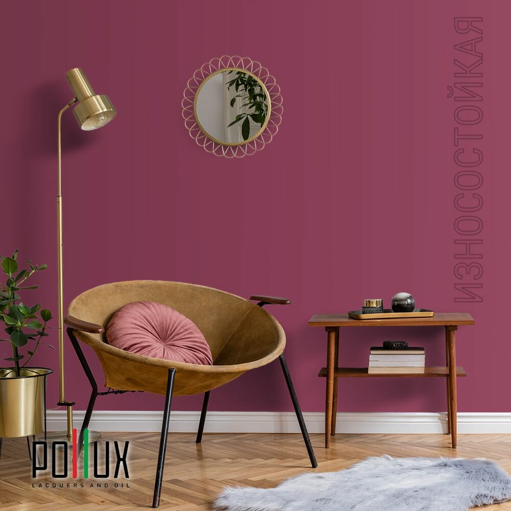 Краска моющаяся интерьерная для стен и потолков, Pollux INTERIOR без запаха, быстросохнущая, акриловая, матовое покрытие, цвет NCS S 3005-R20B, 1л.