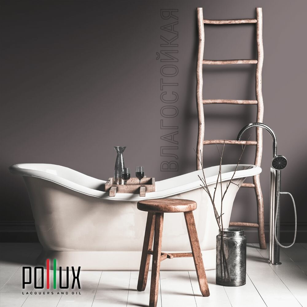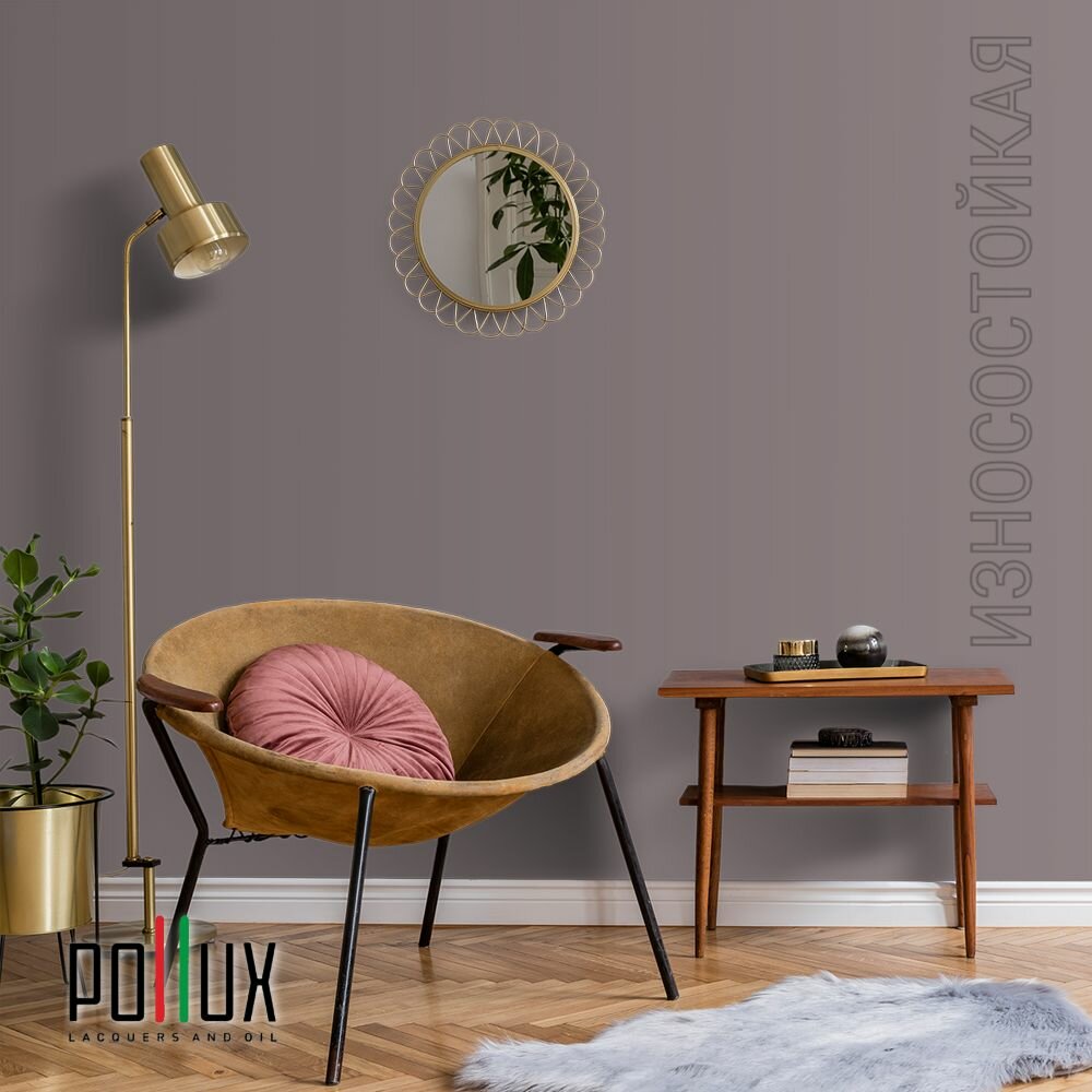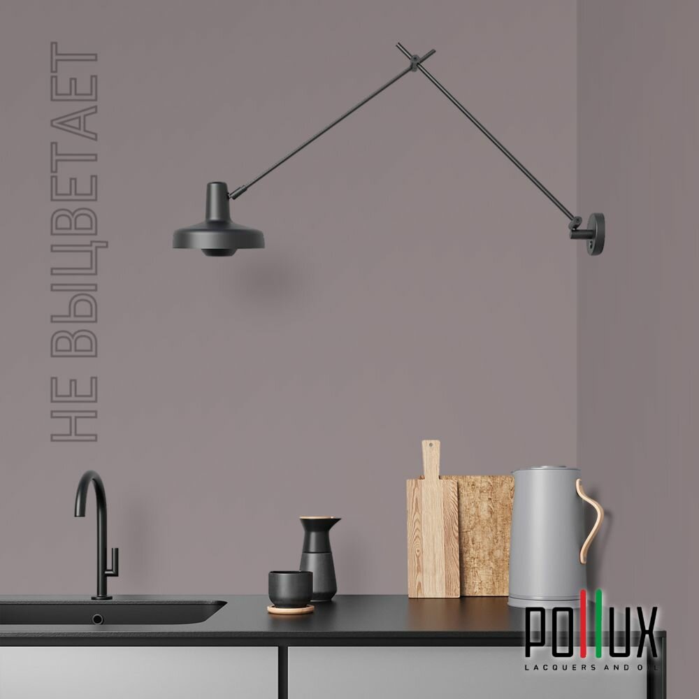 Краска моющаяся интерьерная для стен и потолков, Pollux INTERIOR без запаха, быстросохнущая, акриловая, матовое покрытие, цвет NCS S 7020-R20B, 1л.