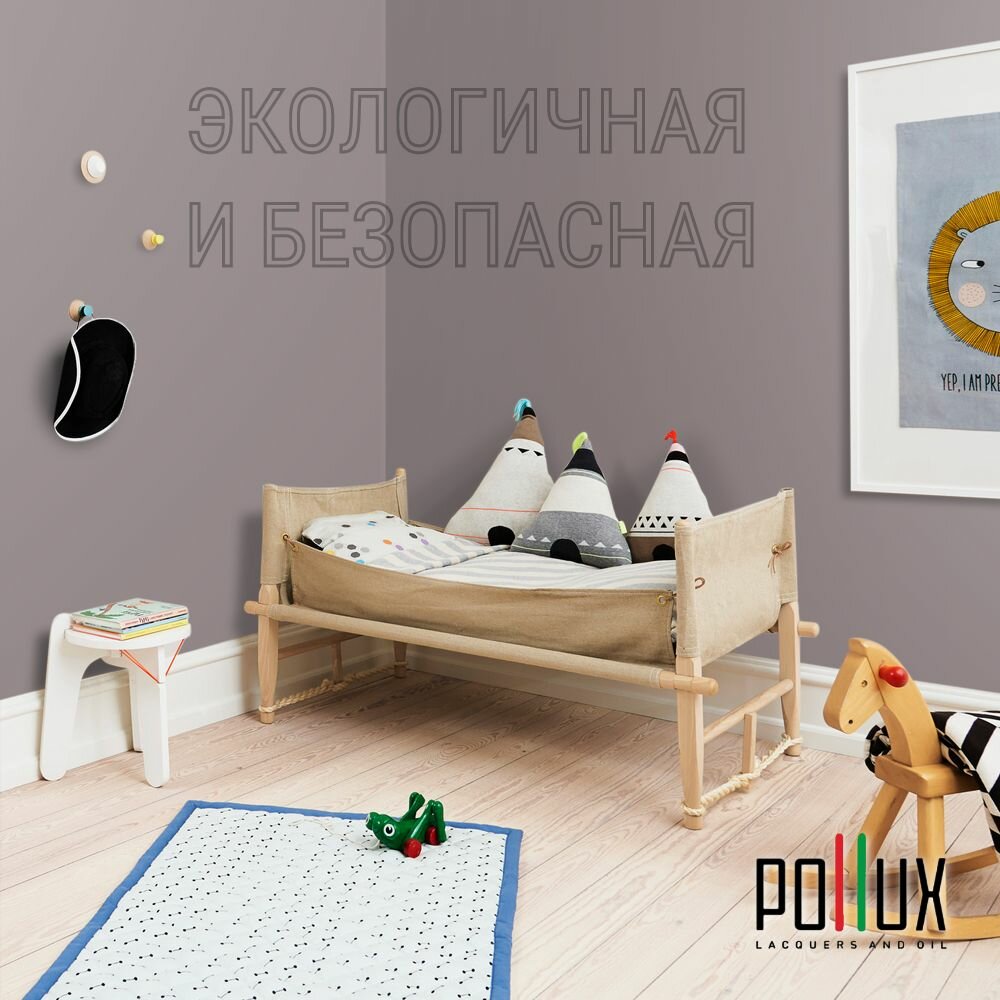 Краска моющаяся интерьерная для стен и потолков, Pollux INTERIOR без запаха, быстросохнущая, акриловая, матовое покрытие, цвет NCS S 8505-R20B, 1л.