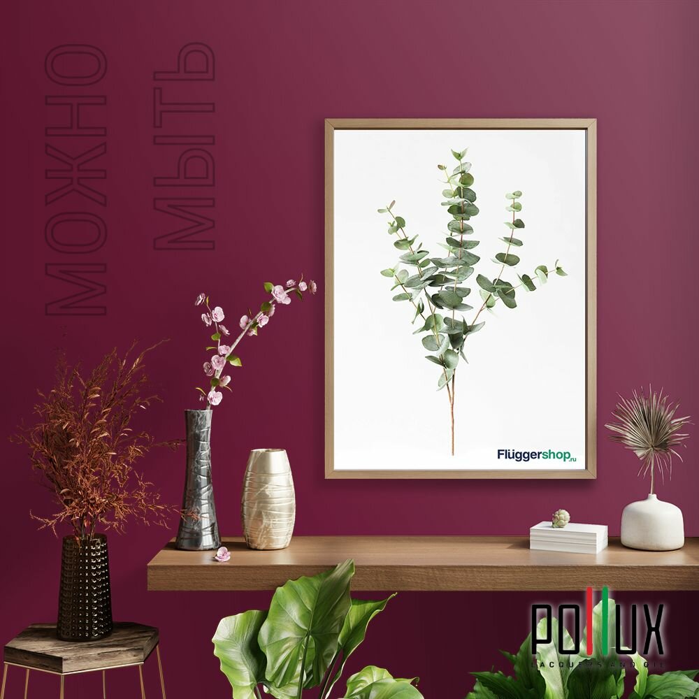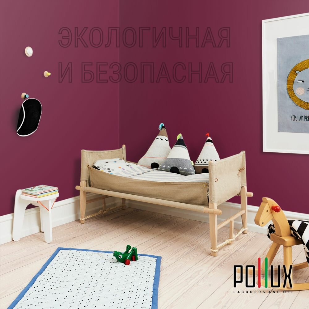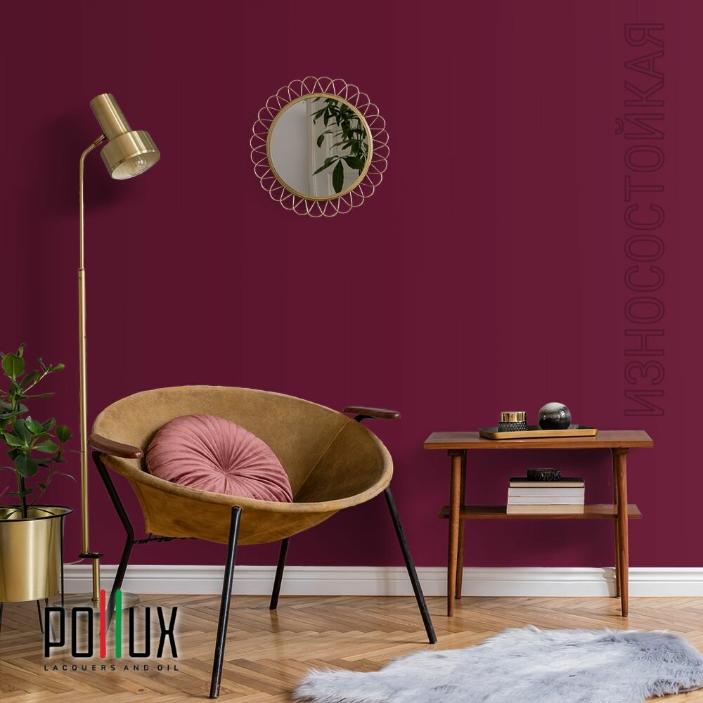 Краска моющаяся интерьерная для стен и потолков, Pollux INTERIOR без запаха, быстросохнущая, акриловая, матовое покрытие, цвет NCS S 3005-R20B, 1л.