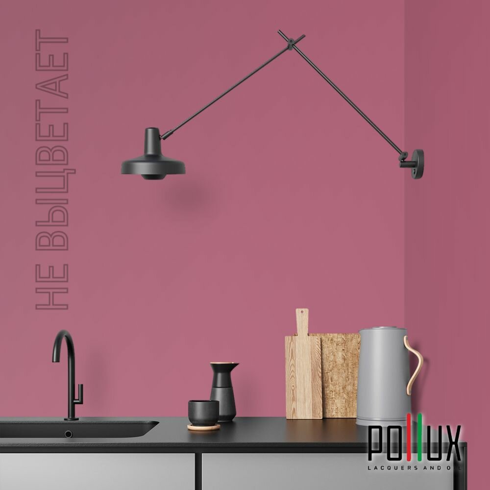 Краска моющаяся интерьерная для стен и потолков, Pollux INTERIOR без запаха, быстросохнущая, акриловая, матовое покрытие, цвет NCS S 0507-R20B, 1л.