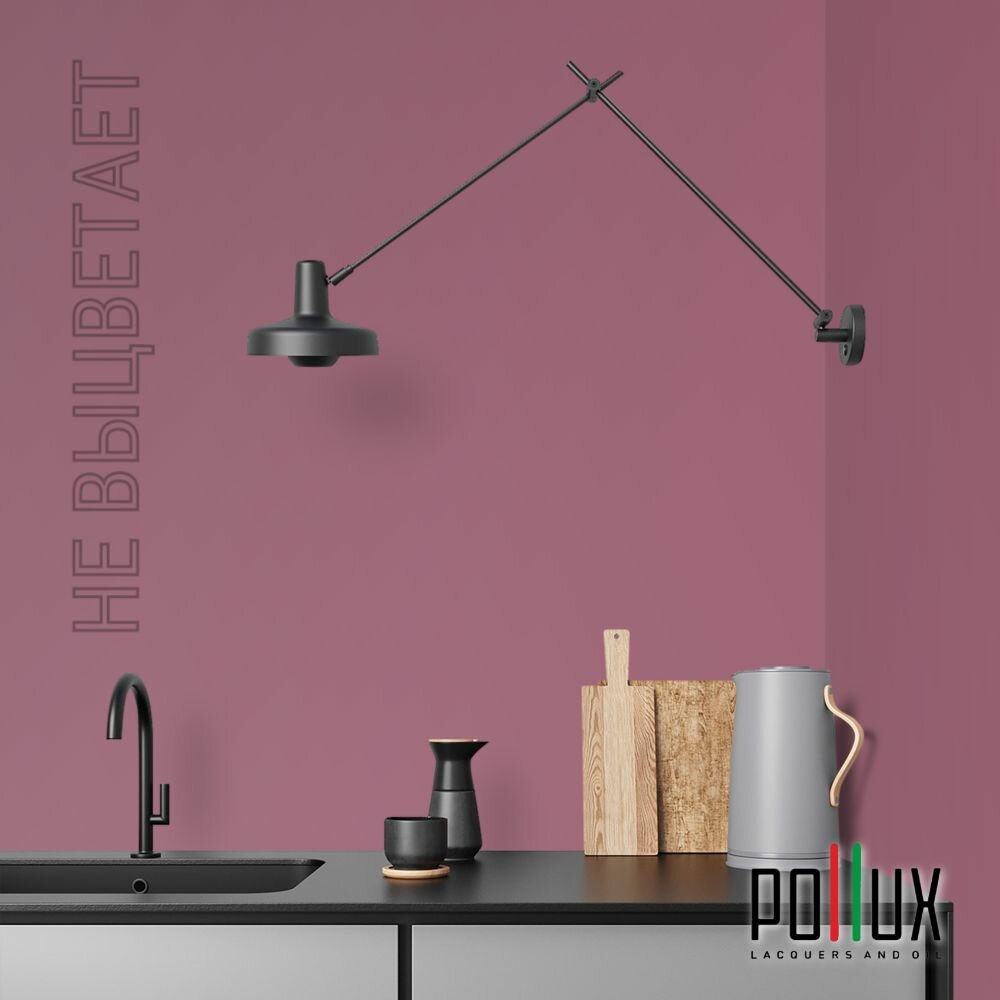 Краска моющаяся интерьерная для стен и потолков, Pollux INTERIOR без запаха, быстросохнущая, акриловая, матовое покрытие, цвет NCS S 0530-R20B, 1л.