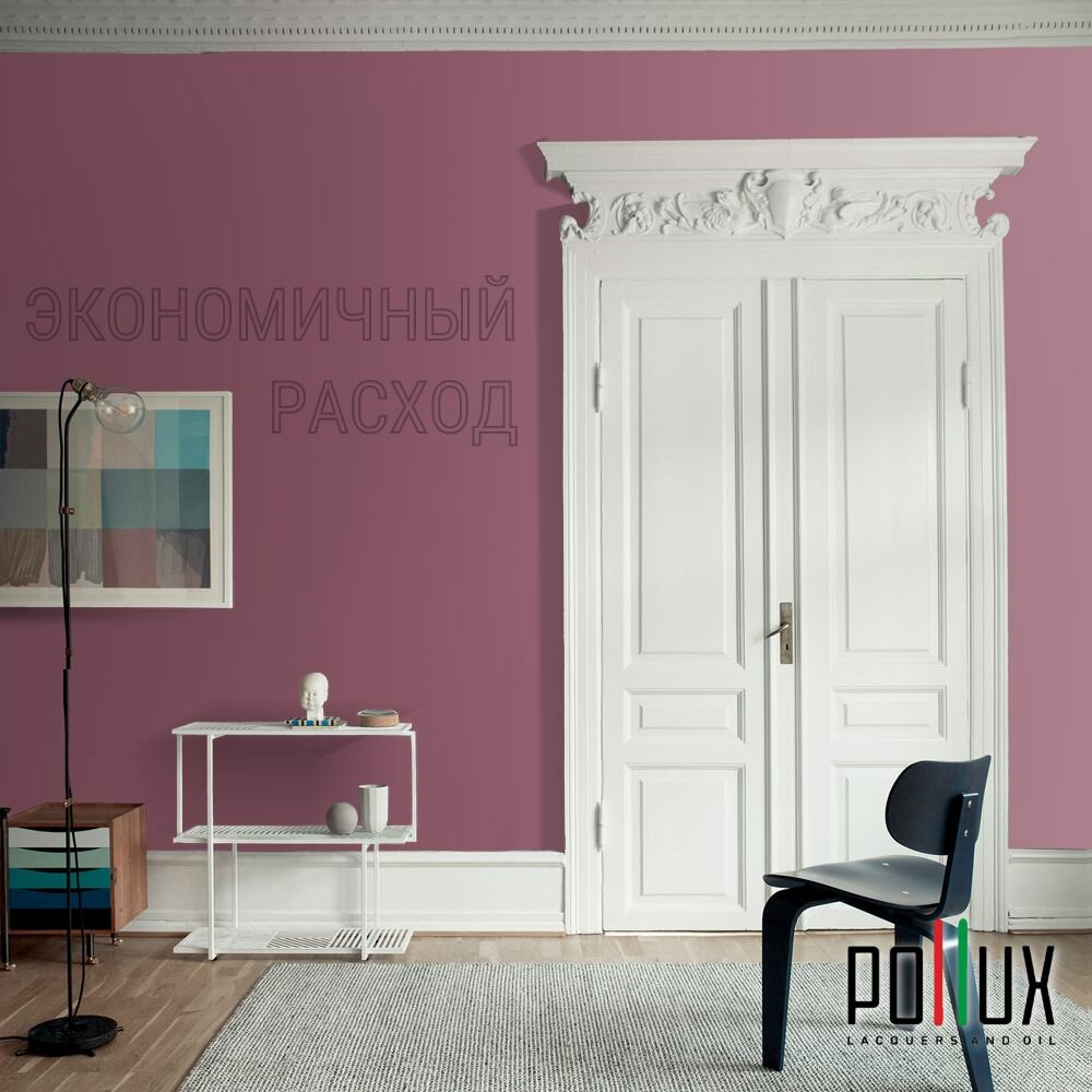 Краска моющаяся интерьерная для стен и потолков, Pollux INTERIOR без запаха, быстросохнущая, акриловая, матовое покрытие, цвет NCS S 4030-R10B, 1л.