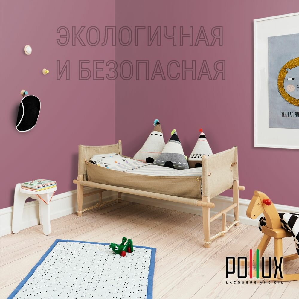 Краска моющаяся интерьерная для стен и потолков, Pollux INTERIOR без запаха, быстросохнущая, акриловая, матовое покрытие, цвет NCS S 8505-R20B, 1л.
