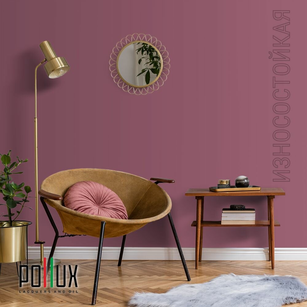 Краска моющаяся интерьерная для стен и потолков, Pollux INTERIOR без запаха, быстросохнущая, акриловая, матовое покрытие, цвет NCS S 3005-R20B, 1л.