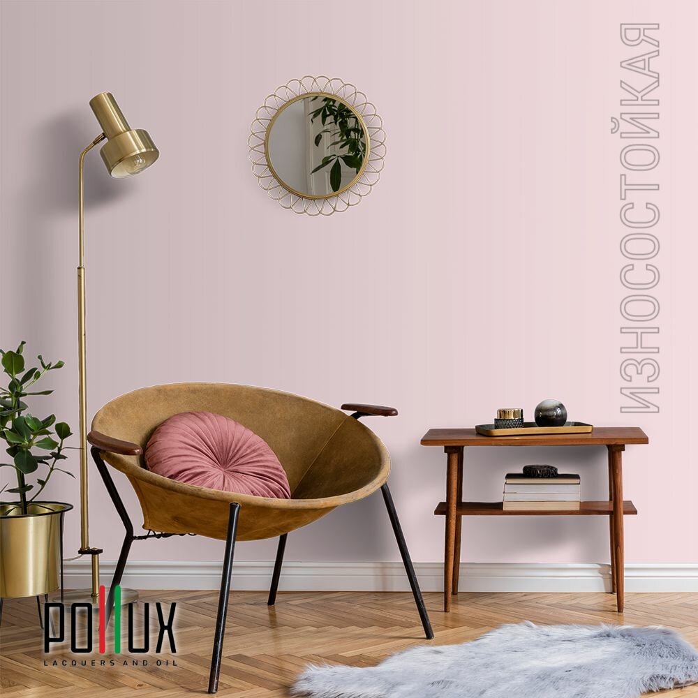 Краска моющаяся интерьерная для стен и потолков, Pollux INTERIOR без запаха, быстросохнущая, акриловая, матовое покрытие, цвет NCS S 0603-R20B, 1л.