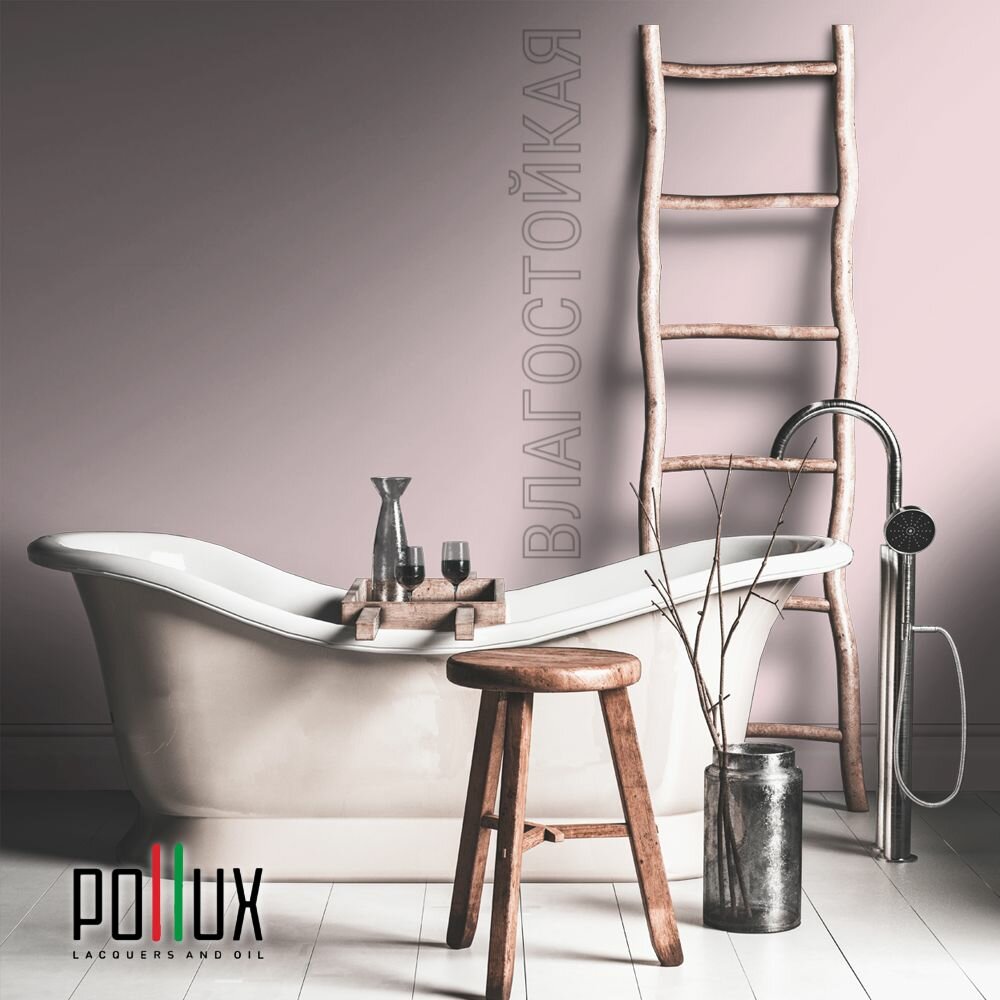 Краска моющаяся интерьерная для стен и потолков, Pollux INTERIOR без запаха, быстросохнущая, акриловая, матовое покрытие, цвет NCS S 0530-R90B, 1л.