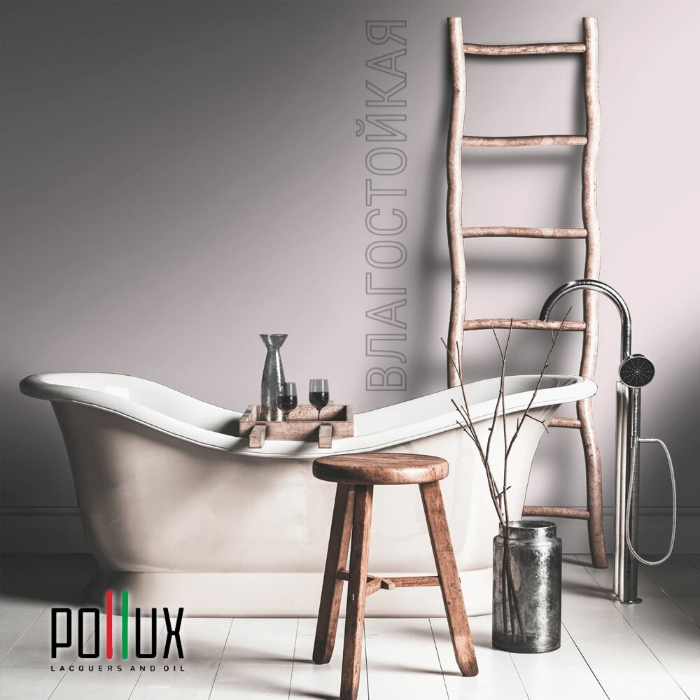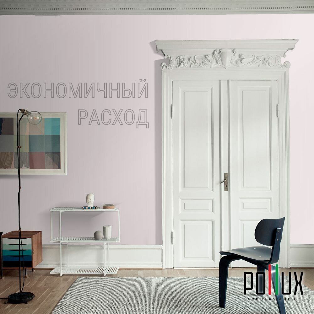 Краска моющаяся интерьерная для стен и потолков, Pollux INTERIOR без запаха, быстросохнущая, акриловая, матовое покрытие, цвет NCS S 0603-R20B, 1л.
