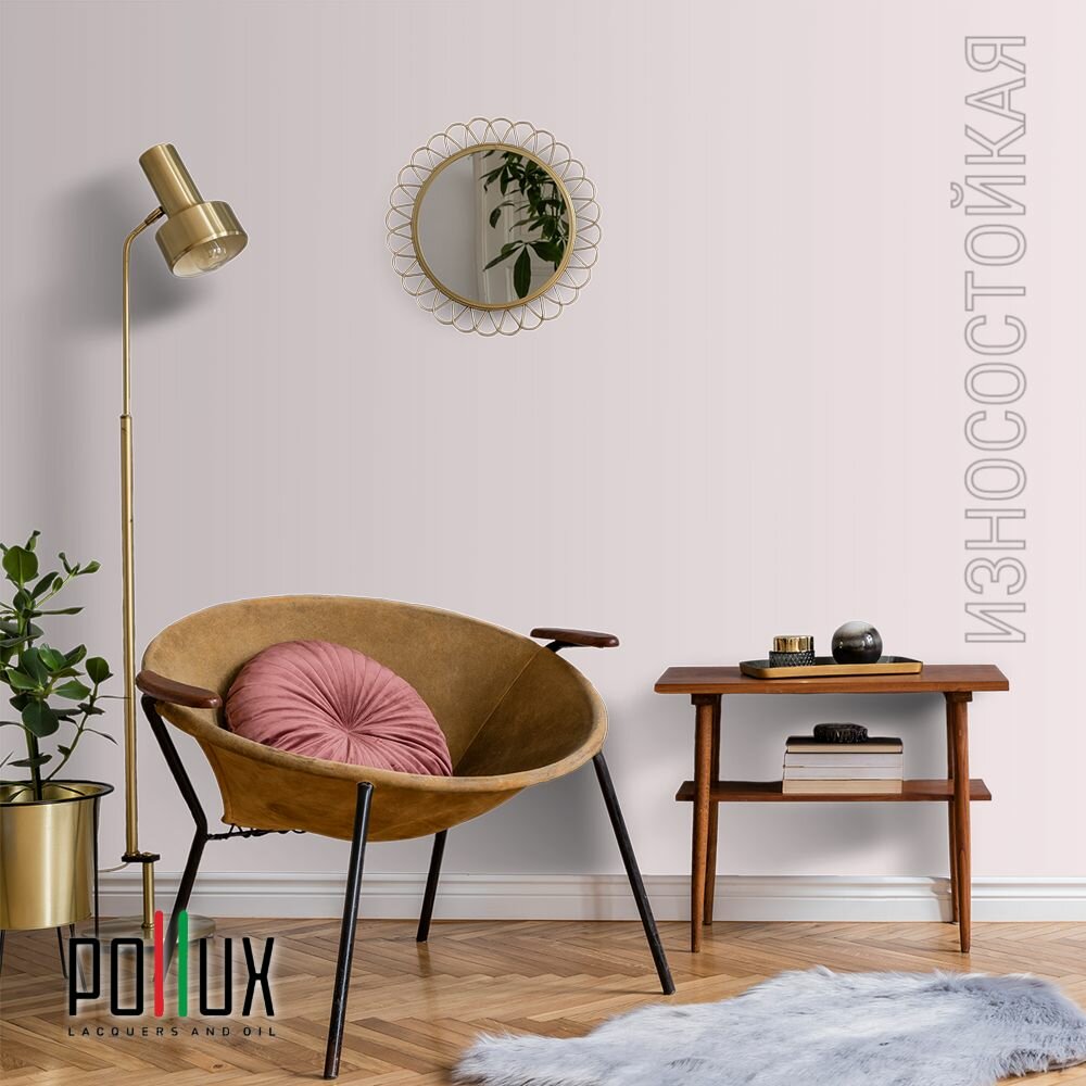 Краска моющаяся интерьерная для стен и потолков, Pollux INTERIOR без запаха, быстросохнущая, акриловая, матовое покрытие, цвет NCS S 1015-R20B, 1л.
