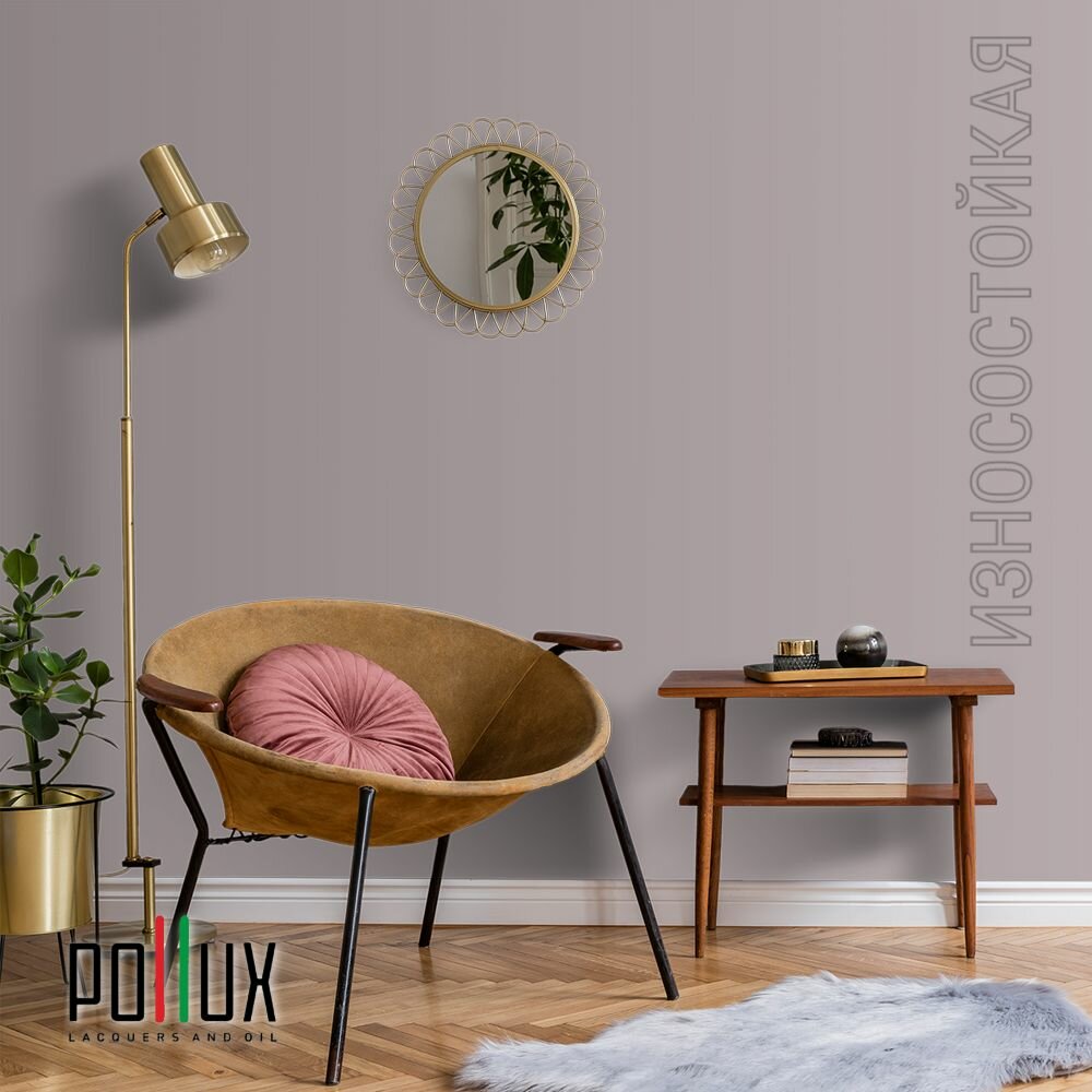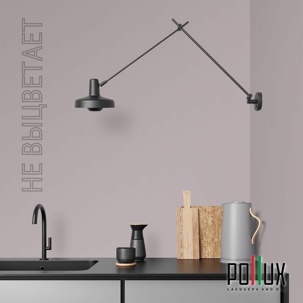 Краска моющаяся интерьерная для стен и потолков, Pollux INTERIOR без запаха, быстросохнущая, акриловая, матовое покрытие, цвет NCS S 7020-R20B, 1л.