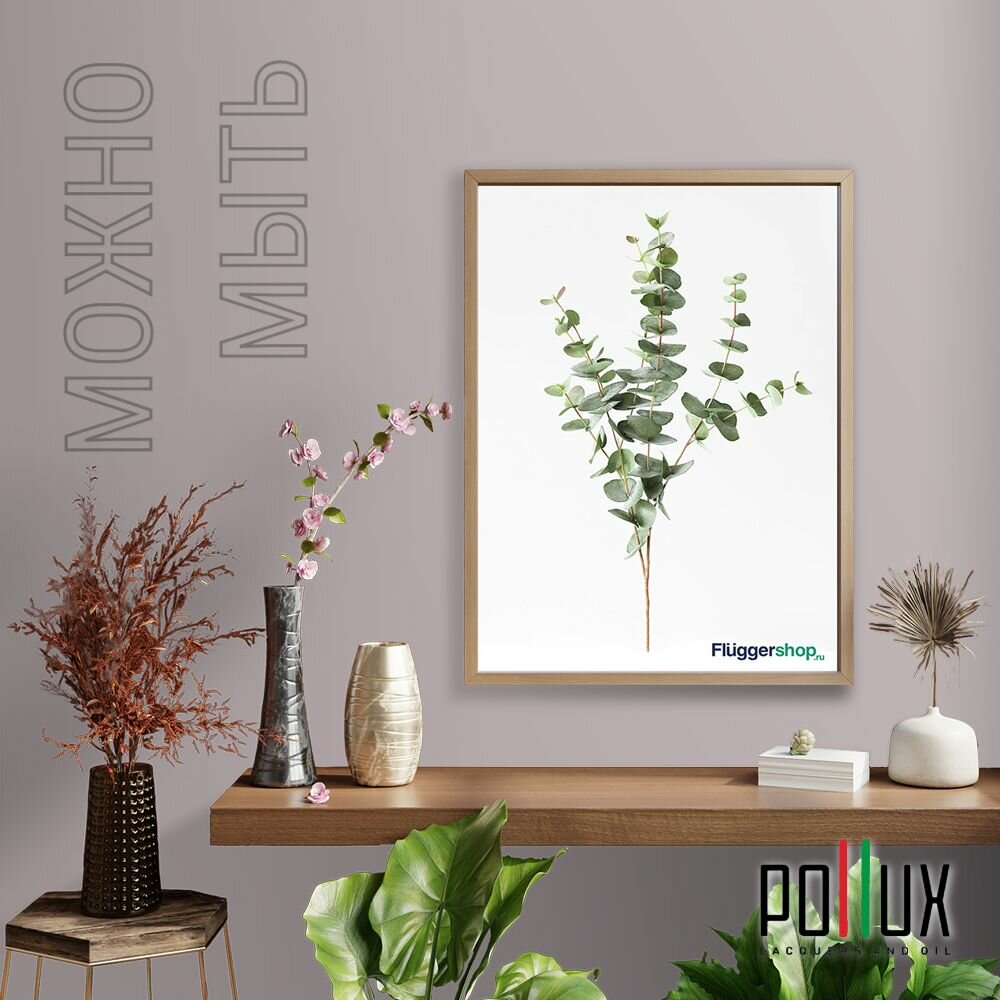 Краска моющаяся интерьерная для стен и потолков, Pollux INTERIOR без запаха, быстросохнущая, акриловая, матовое покрытие, цвет NCS S 2065-R20B, 1л.