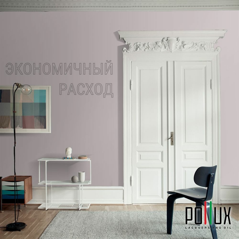Краска моющаяся интерьерная для стен и потолков, Pollux INTERIOR без запаха, быстросохнущая, акриловая, матовое покрытие, цвет NCS S 0507-R20B, 1л.