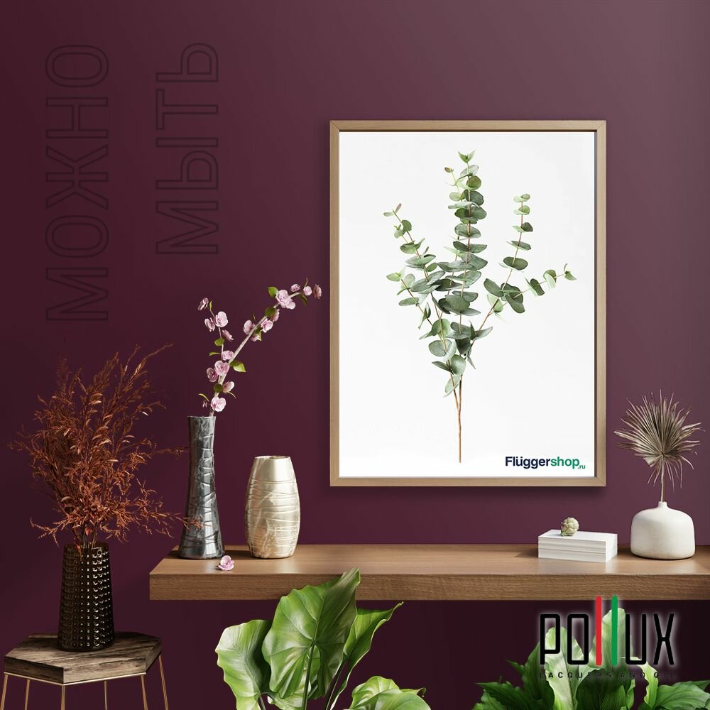 Краска моющаяся интерьерная для стен и потолков, Pollux INTERIOR без запаха, быстросохнущая, акриловая, матовое покрытие, цвет NCS S 8505-R20B, 1л.