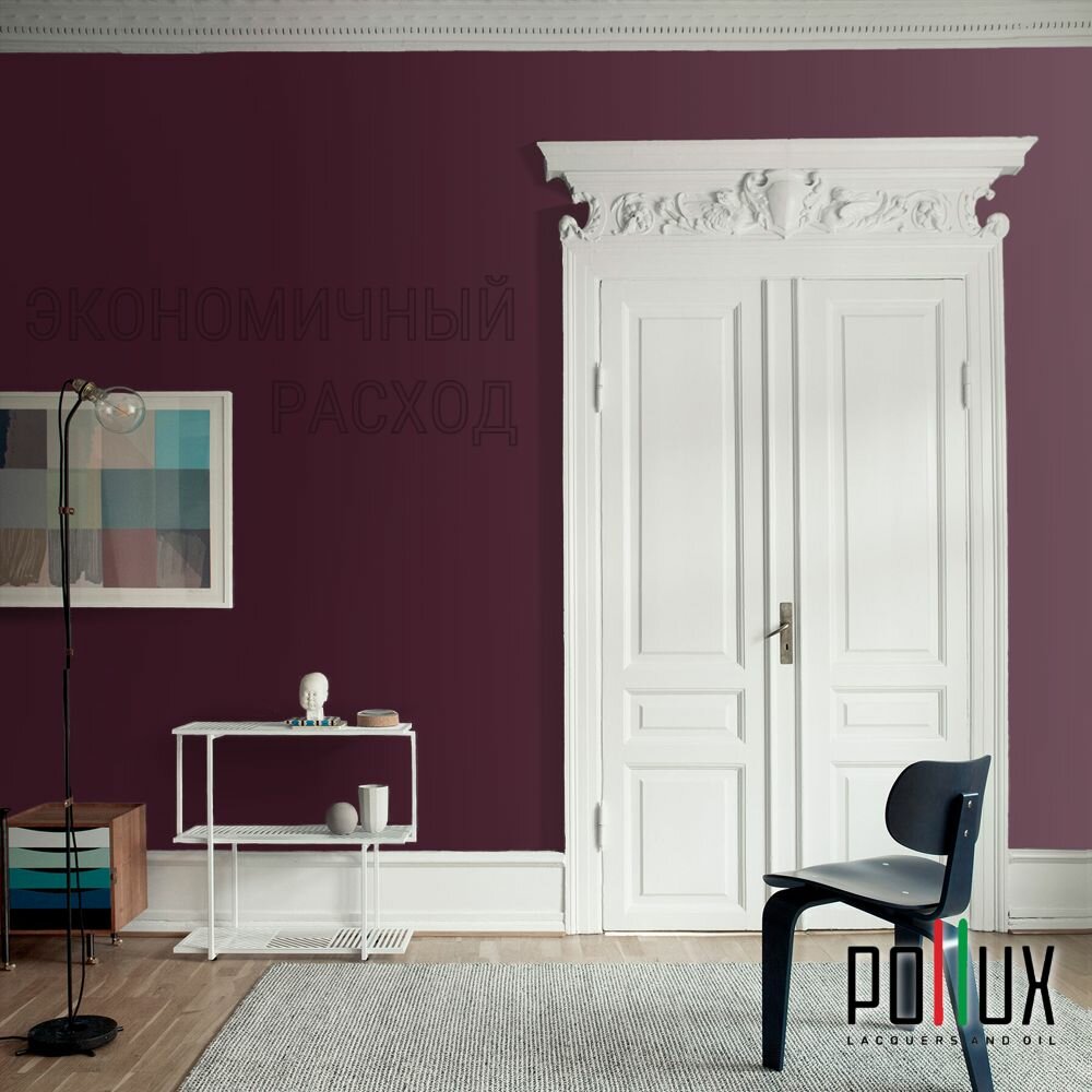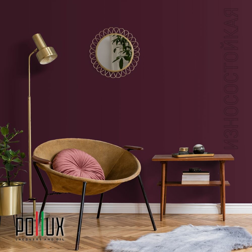 Краска моющаяся интерьерная для стен и потолков, Pollux INTERIOR без запаха, быстросохнущая, акриловая, матовое покрытие, цвет NCS S 3005-R20B, 1л.