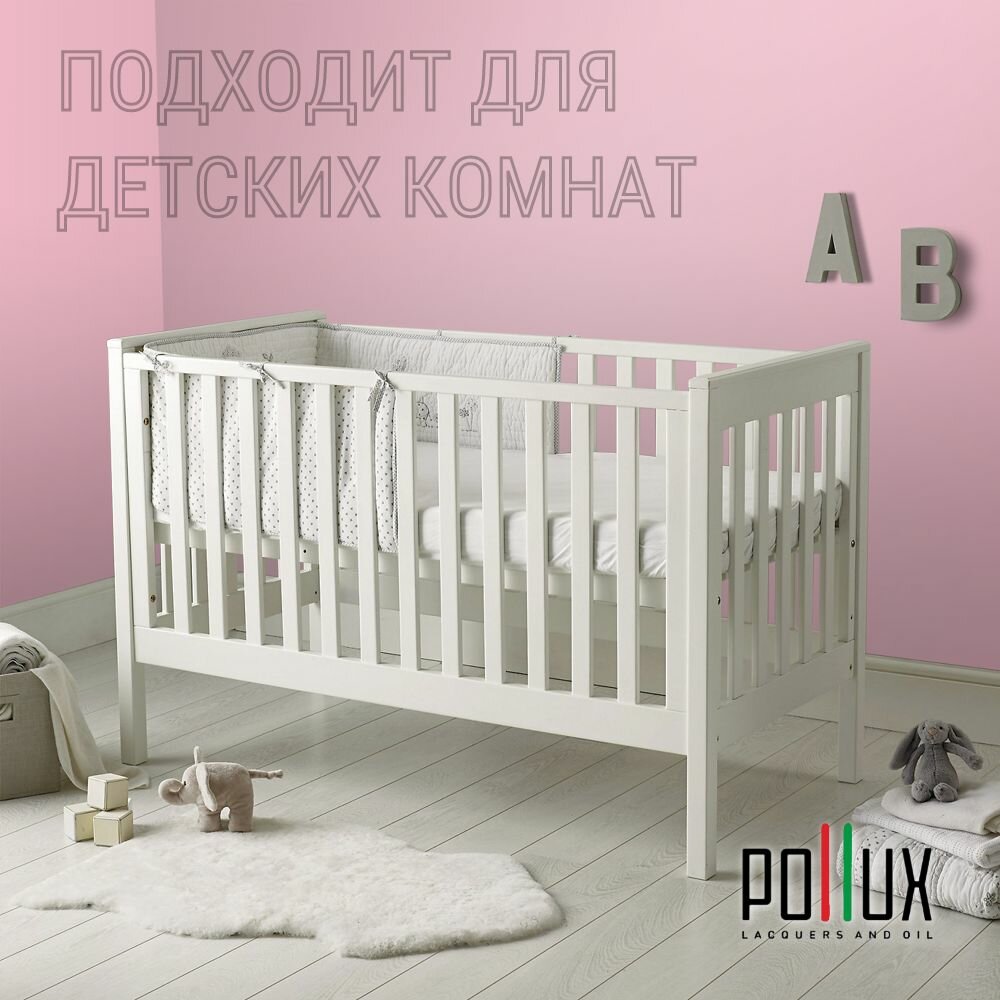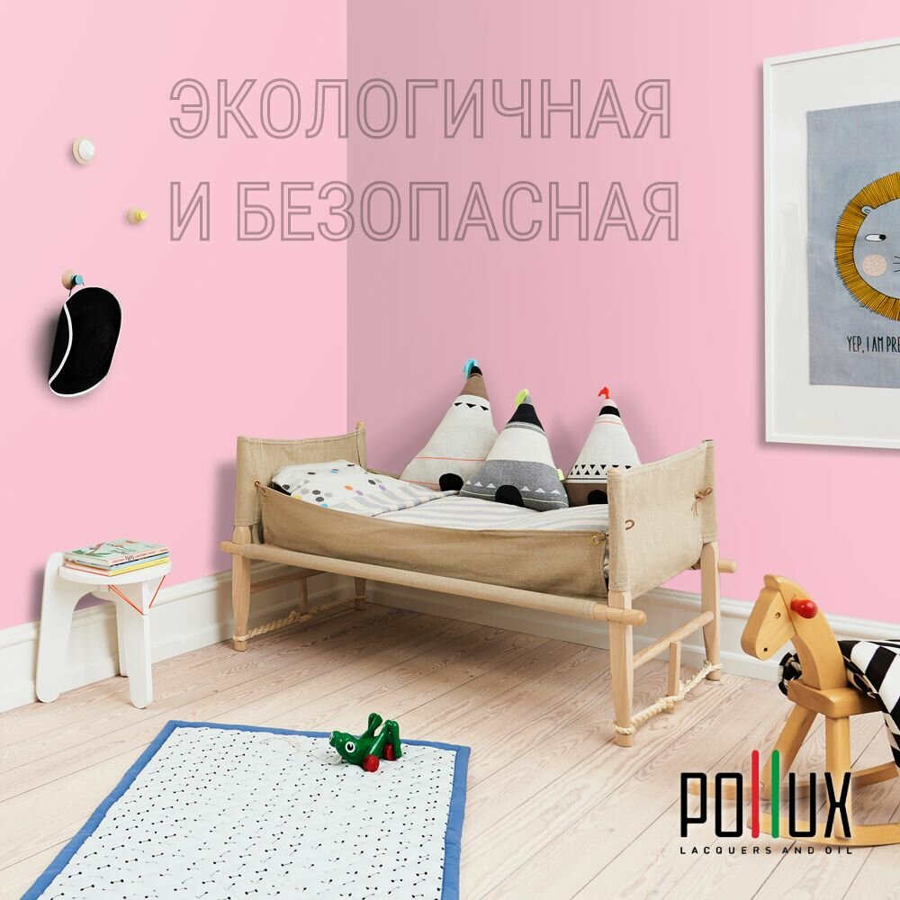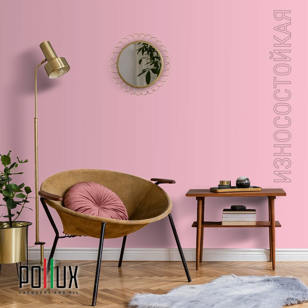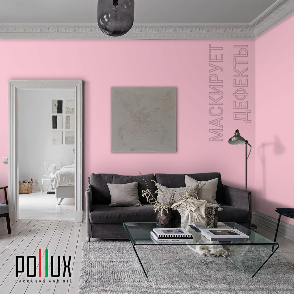 Краска моющаяся интерьерная для стен и потолков, Pollux INTERIOR без запаха, быстросохнущая, акриловая, матовое покрытие, цвет NCS S 0603-R20B, 1л.