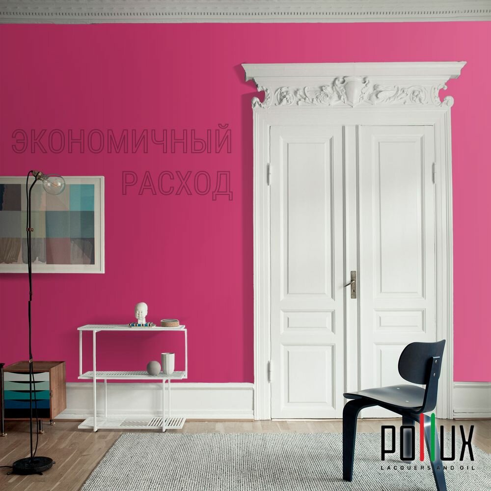 Краска моющаяся интерьерная для стен и потолков, Pollux INTERIOR без запаха, быстросохнущая, акриловая, матовое покрытие, цвет NCS S 2030-R20B, 1л.