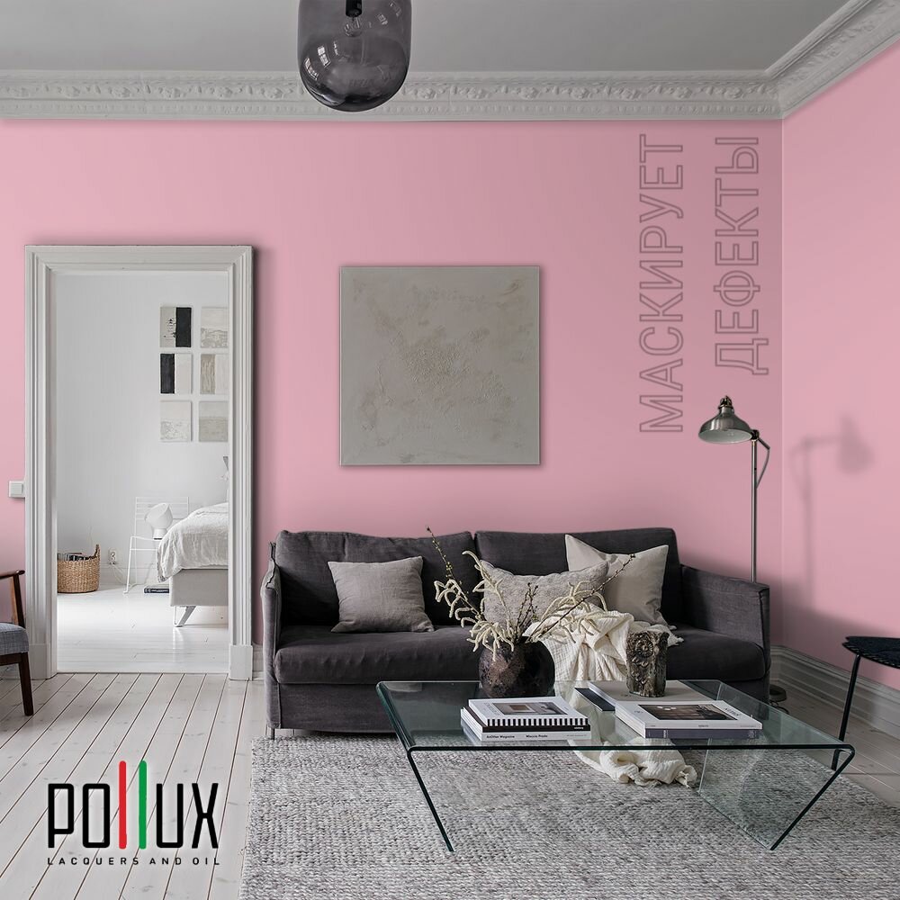 Краска моющаяся интерьерная для стен и потолков, Pollux INTERIOR без запаха, быстросохнущая, акриловая, матовое покрытие, цвет NCS S 0603-R20B, 1л.