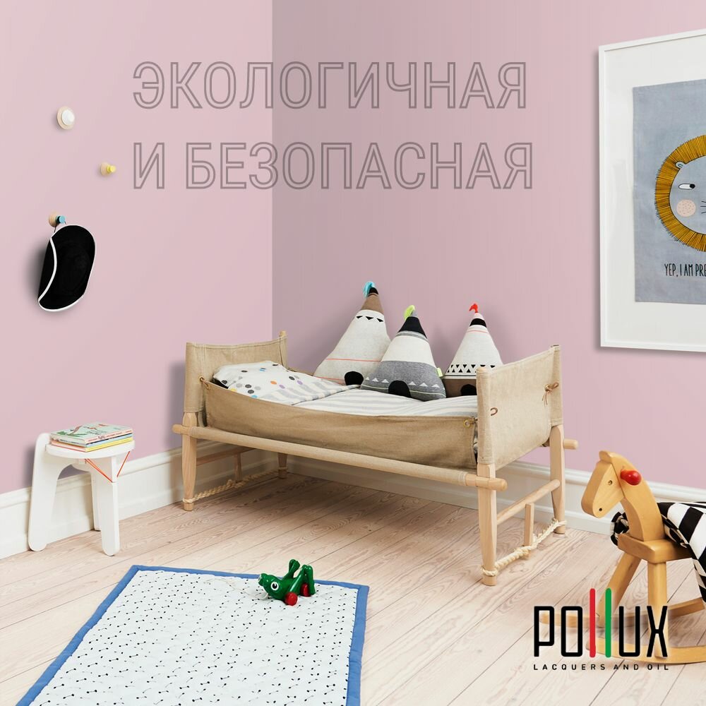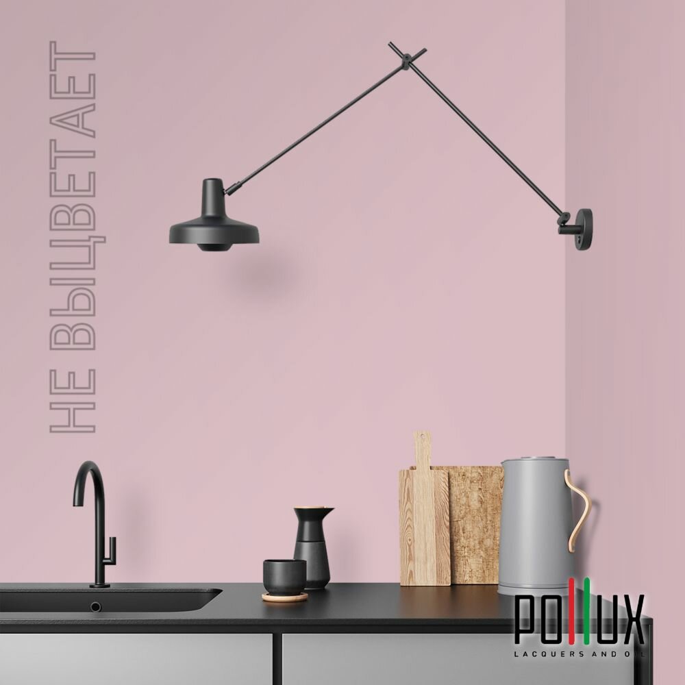 Краска моющаяся интерьерная для стен и потолков, Pollux INTERIOR без запаха, быстросохнущая, акриловая, матовое покрытие, цвет NCS S 0603-R20B, 1л.