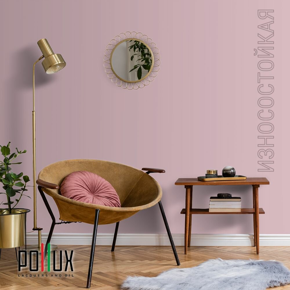 Краска моющаяся интерьерная для стен и потолков, Pollux INTERIOR без запаха, быстросохнущая, акриловая, матовое покрытие, цвет NCS S 0507-R20B, 1л.