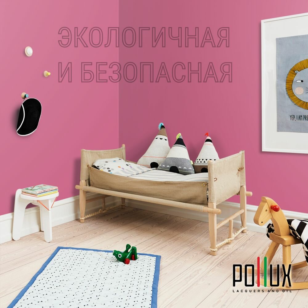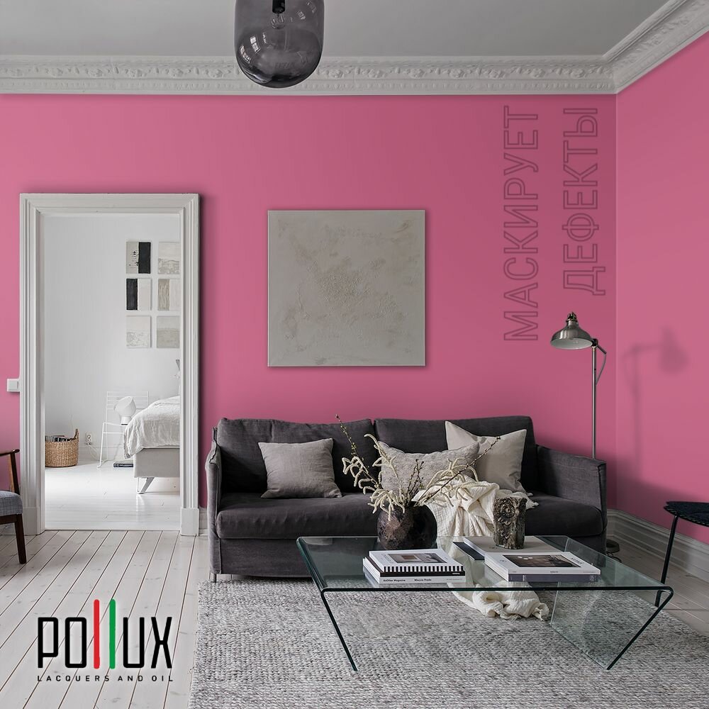 Краска моющаяся интерьерная для стен и потолков, Pollux INTERIOR без запаха, быстросохнущая, акриловая, матовое покрытие, цвет NCS S 0603-R20B, 1л.