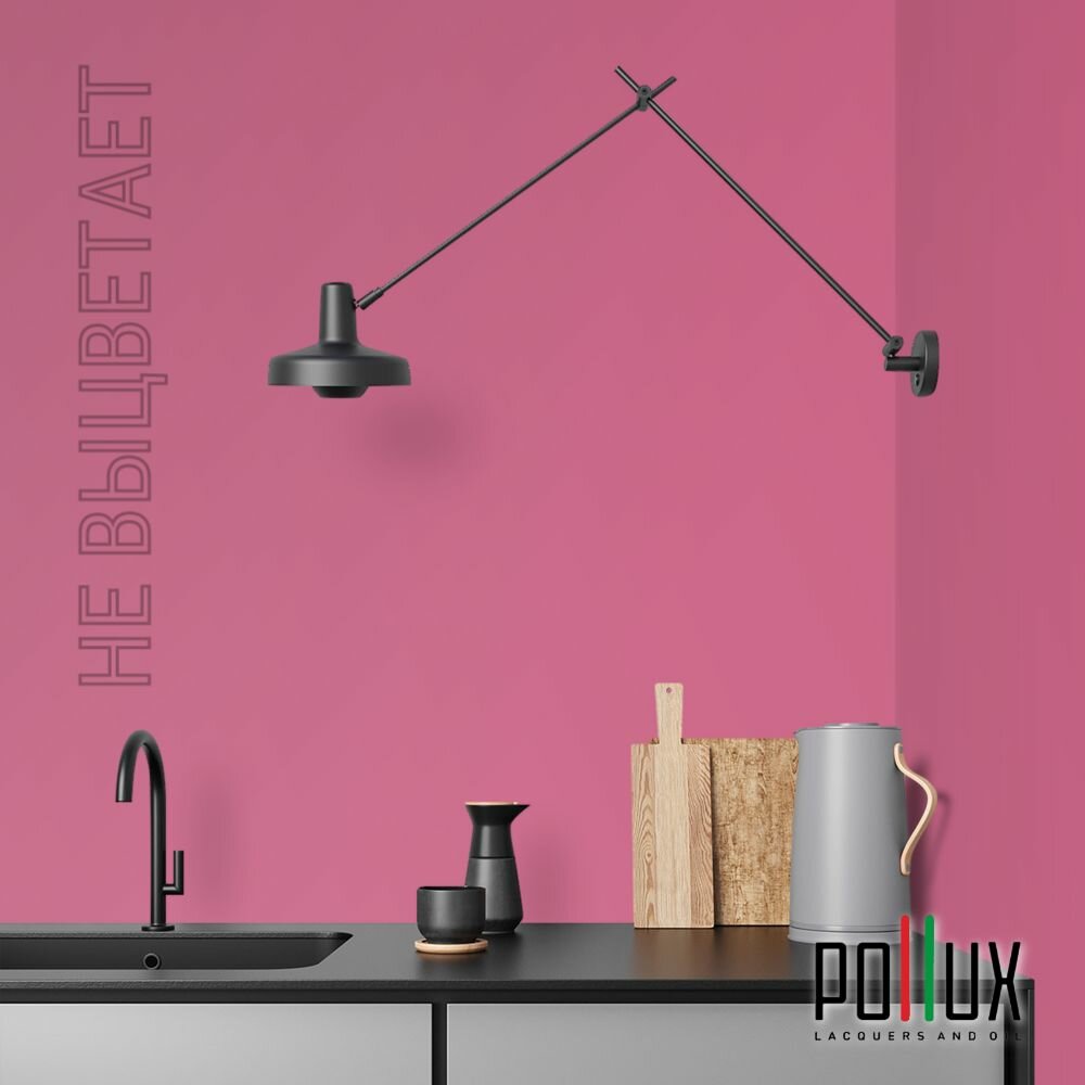 Краска моющаяся интерьерная для стен и потолков, Pollux INTERIOR без запаха, быстросохнущая, акриловая, матовое покрытие, цвет NCS S 0530-R20B, 1л.