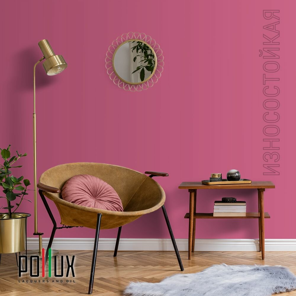 Краска моющаяся интерьерная для стен и потолков, Pollux INTERIOR без запаха, быстросохнущая, акриловая, матовое покрытие, цвет NCS S 2005-R20B, 5л.