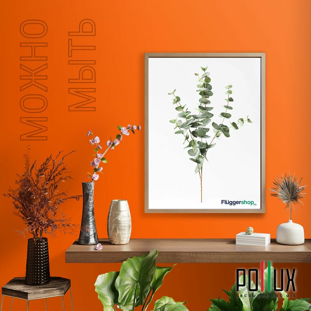 Краска моющаяся интерьерная для стен и потолков, Pollux INTERIOR без запаха, быстросохнущая, акриловая, матовое покрытие, цвет NCS S 1040-R70B, 1л.