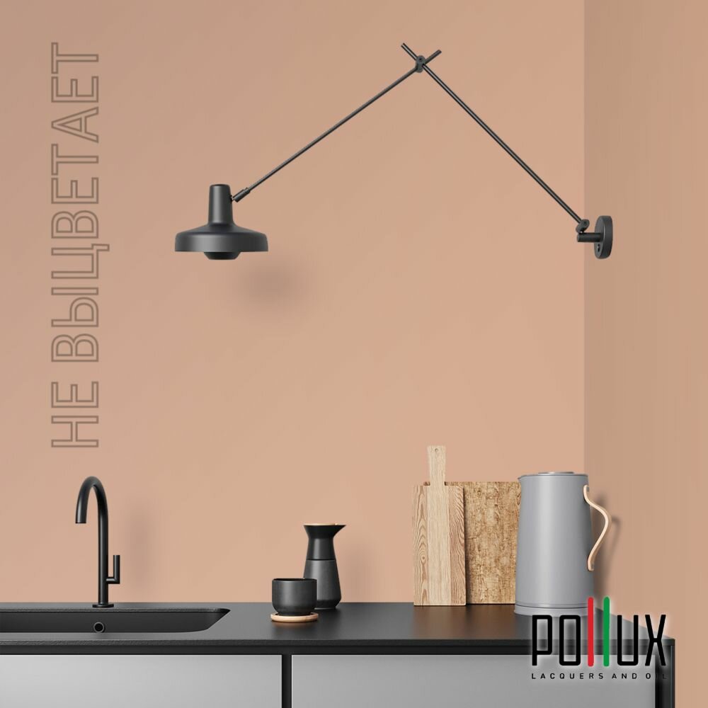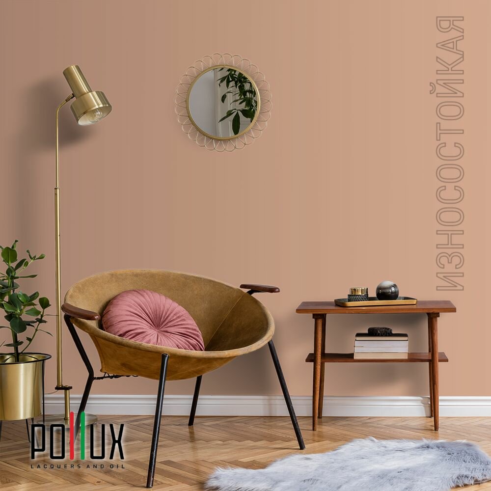 Краска моющаяся интерьерная для стен и потолков, Pollux INTERIOR без запаха, быстросохнущая, акриловая, матовое покрытие, цвет NCS S 0585-Y60R, 1л.