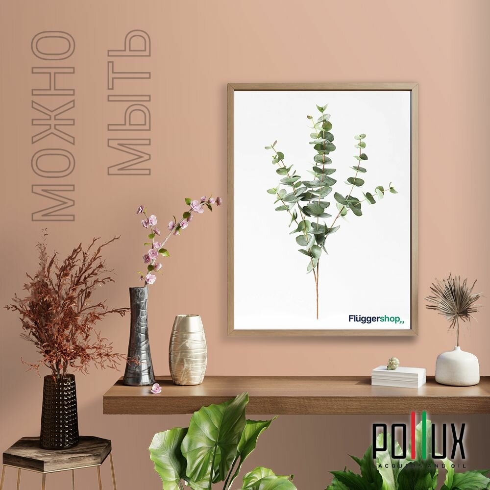 Краска моющаяся интерьерная для стен и потолков, Pollux INTERIOR без запаха, быстросохнущая, акриловая, матовое покрытие, цвет NCS S 3040-Y60R, 1л.