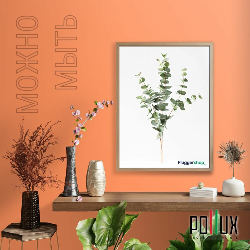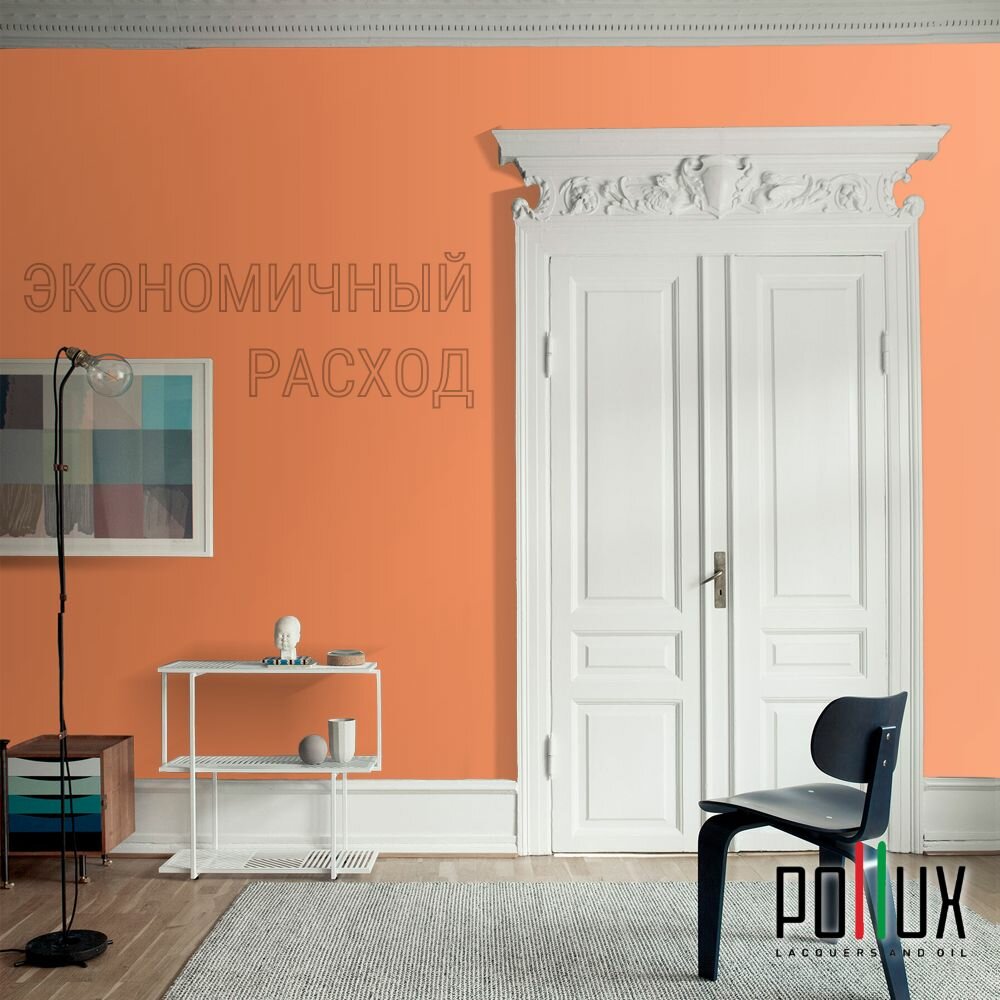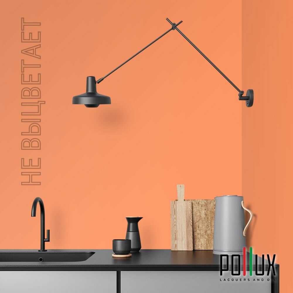 Краска моющаяся интерьерная для стен и потолков, Pollux INTERIOR без запаха, быстросохнущая, акриловая, матовое покрытие, цвет NCS S 0585-Y60R, 1л.