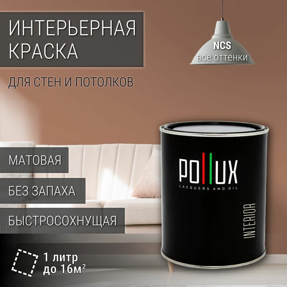 Краска моющаяся интерьерная для стен и потолков, Pollux INTERIOR без запаха, быстросохнущая, акриловая, матовое покрытие, цвет NCS S 7020-Y60R, 1л.