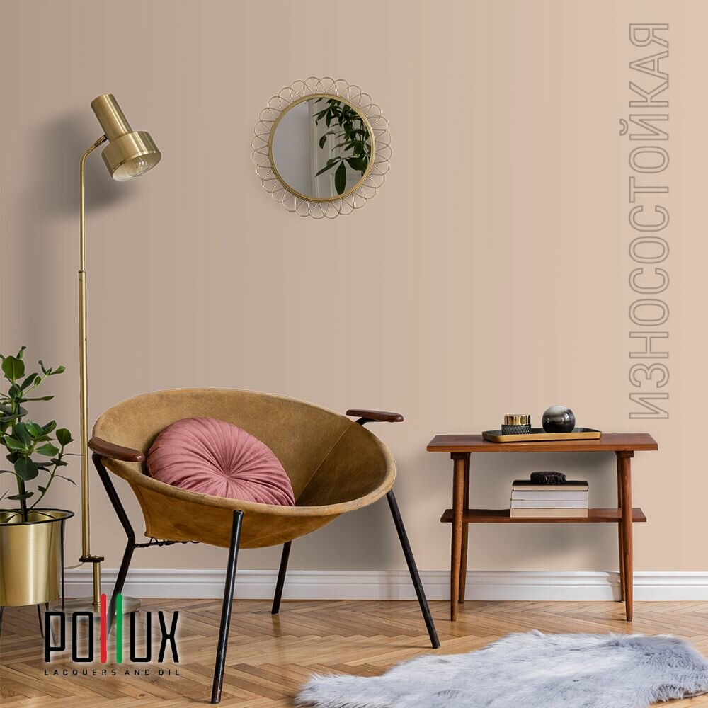Краска моющаяся интерьерная для стен и потолков, Pollux INTERIOR без запаха, быстросохнущая, акриловая, матовое покрытие, цвет NCS S 0585-Y60R, 1л.