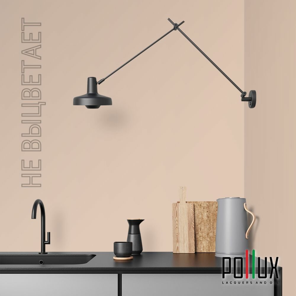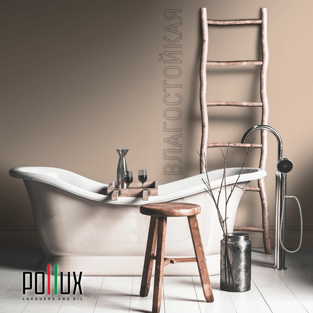 Краска моющаяся интерьерная для стен и потолков, Pollux INTERIOR без запаха, быстросохнущая, акриловая, матовое покрытие, цвет NCS S 7020-Y60R, 1л.