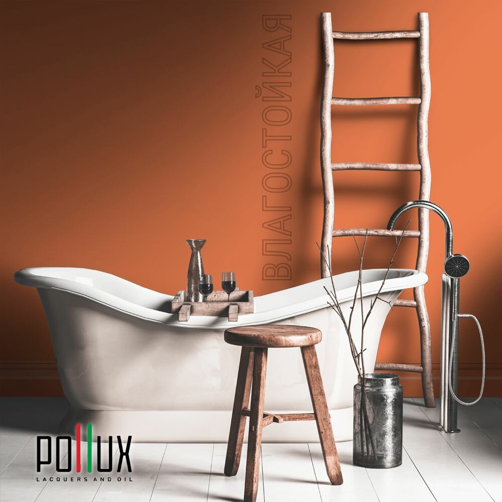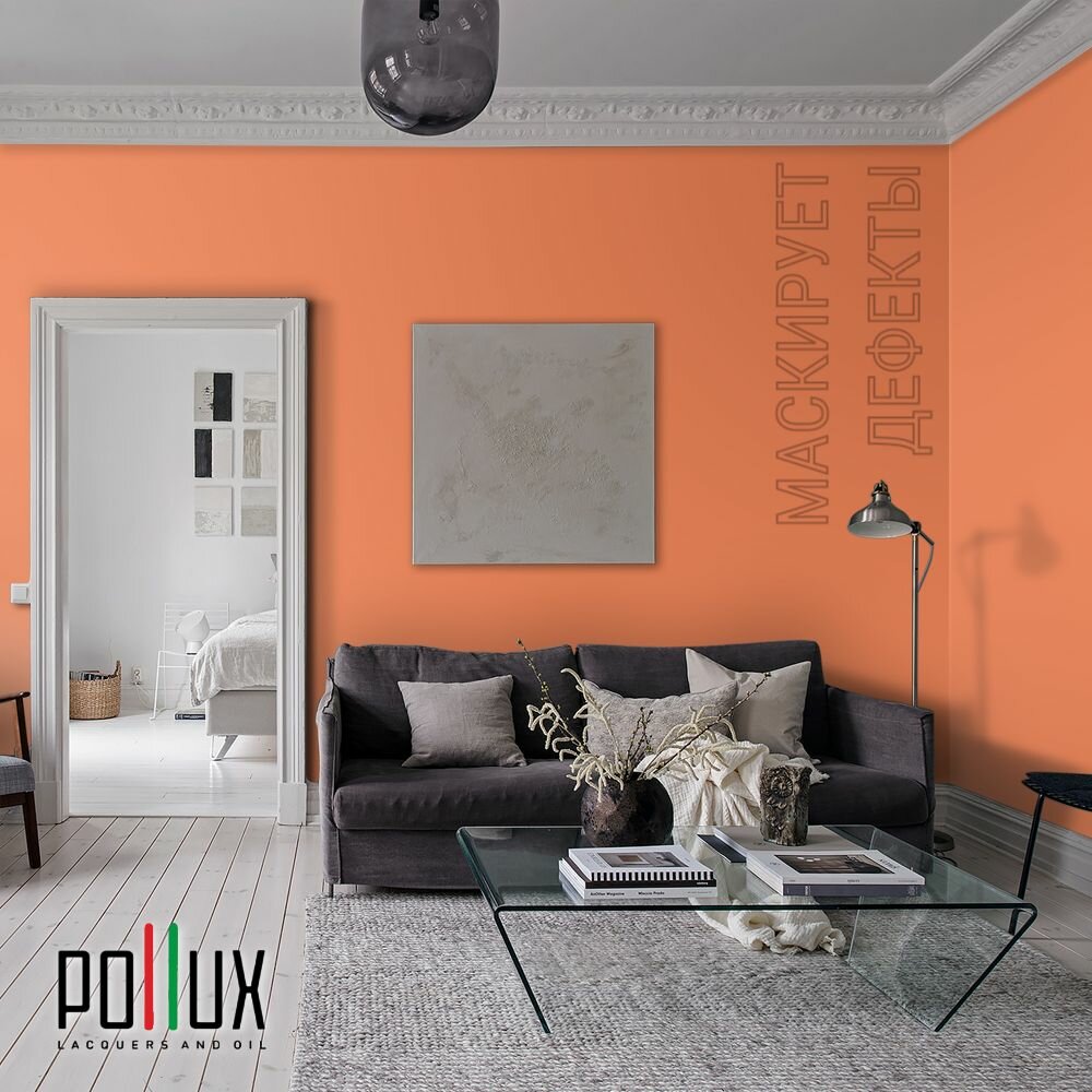 Краска моющаяся интерьерная для стен и потолков, Pollux INTERIOR без запаха, быстросохнущая, акриловая, матовое покрытие, цвет NCS S 1040-R50B, 1л.