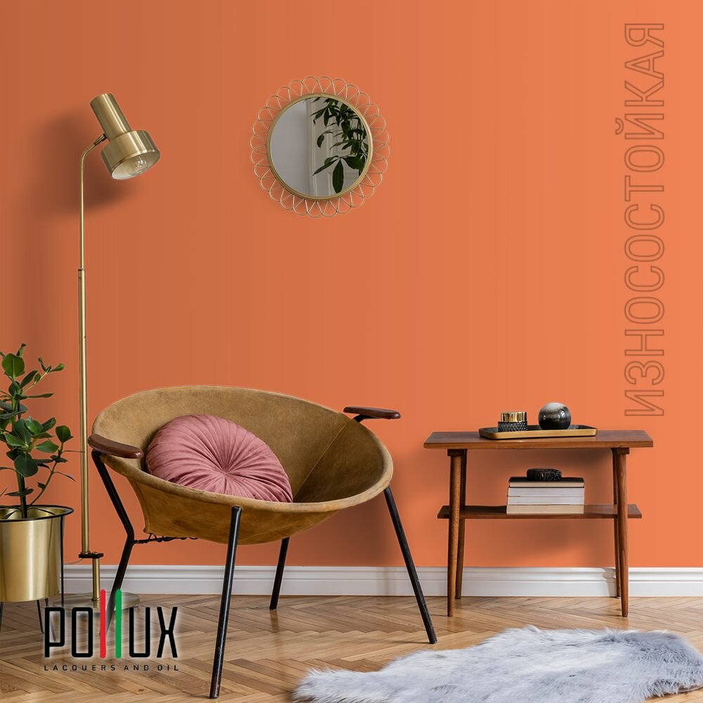 Краска моющаяся интерьерная для стен и потолков, Pollux INTERIOR без запаха, быстросохнущая, акриловая, матовое покрытие, цвет NCS S 0585-Y60R, 1л.