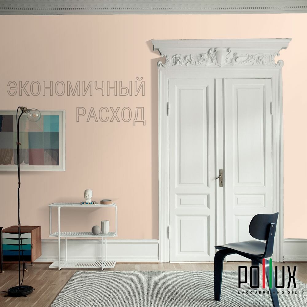 Краска моющаяся интерьерная для стен и потолков, Pollux INTERIOR без запаха, быстросохнущая, акриловая, матовое покрытие, цвет NCS S 4030-R10B, 1л.