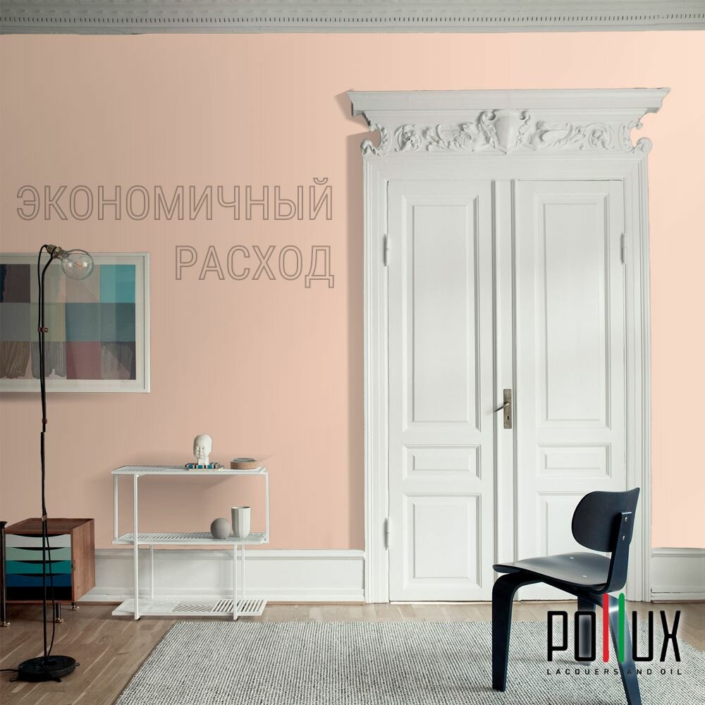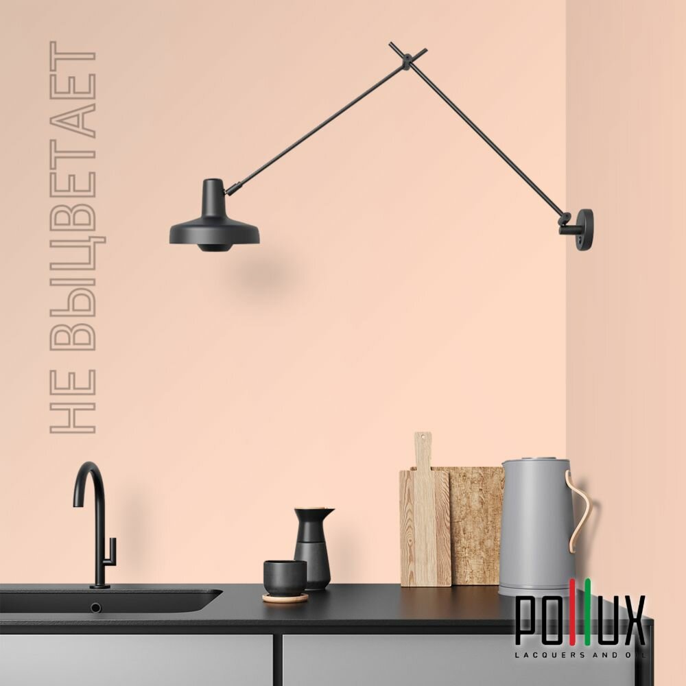 Краска моющаяся интерьерная для стен и потолков, Pollux INTERIOR без запаха, быстросохнущая, акриловая, матовое покрытие, цвет NCS S 1040-R50B, 1л.