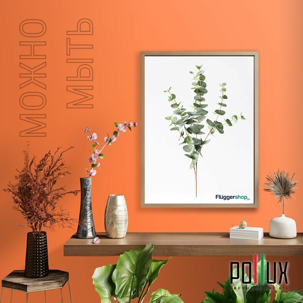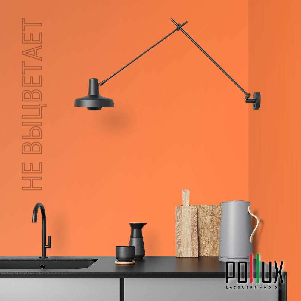 Краска моющаяся интерьерная для стен и потолков, Pollux INTERIOR без запаха, быстросохнущая, акриловая, матовое покрытие, цвет NCS S 0585-Y60R, 1л.