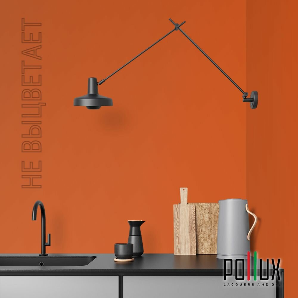 Краска моющаяся интерьерная для стен и потолков, Pollux INTERIOR без запаха, быстросохнущая, акриловая, матовое покрытие, цвет NCS S 0585-Y60R, 1л.