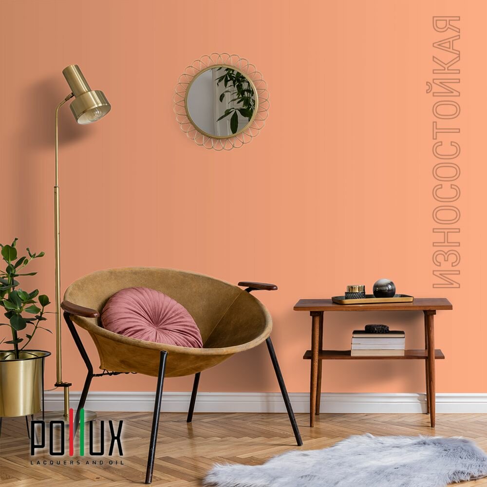 Краска моющаяся интерьерная для стен и потолков, Pollux INTERIOR без запаха, быстросохнущая, акриловая, матовое покрытие, цвет NCS S 0585-Y60R, 1л.