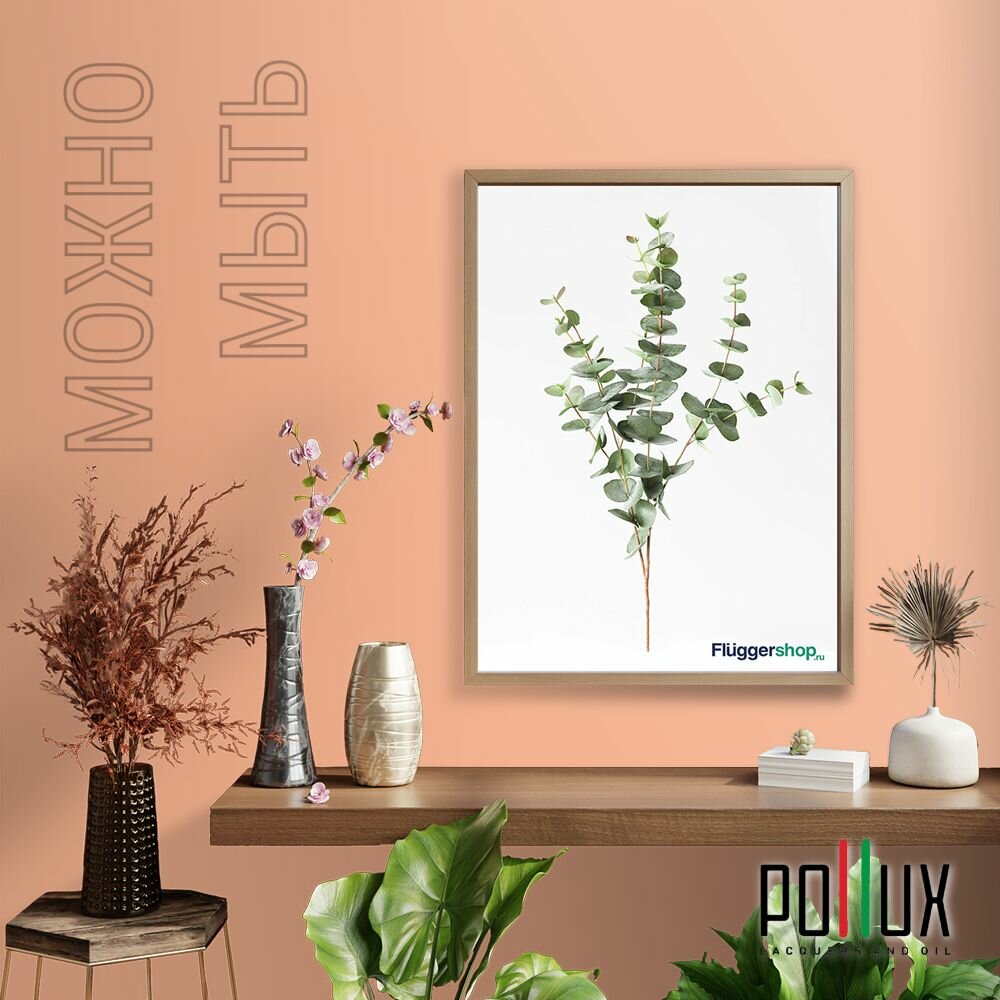 Краска моющаяся интерьерная для стен и потолков, Pollux INTERIOR без запаха, быстросохнущая, акриловая, матовое покрытие, цвет NCS S 1040-R50B, 1л.