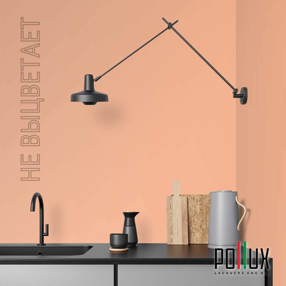 Краска моющаяся интерьерная для стен и потолков, Pollux INTERIOR без запаха, быстросохнущая, акриловая, матовое покрытие, цвет NCS S 0585-Y60R, 1л.