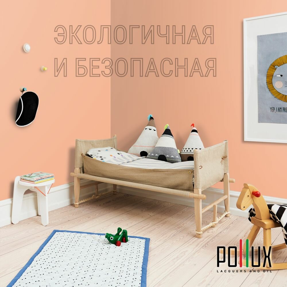 Краска моющаяся интерьерная для стен и потолков, Pollux INTERIOR без запаха, быстросохнущая, акриловая, матовое покрытие, цвет NCS S 2030-Y60R, 1л.