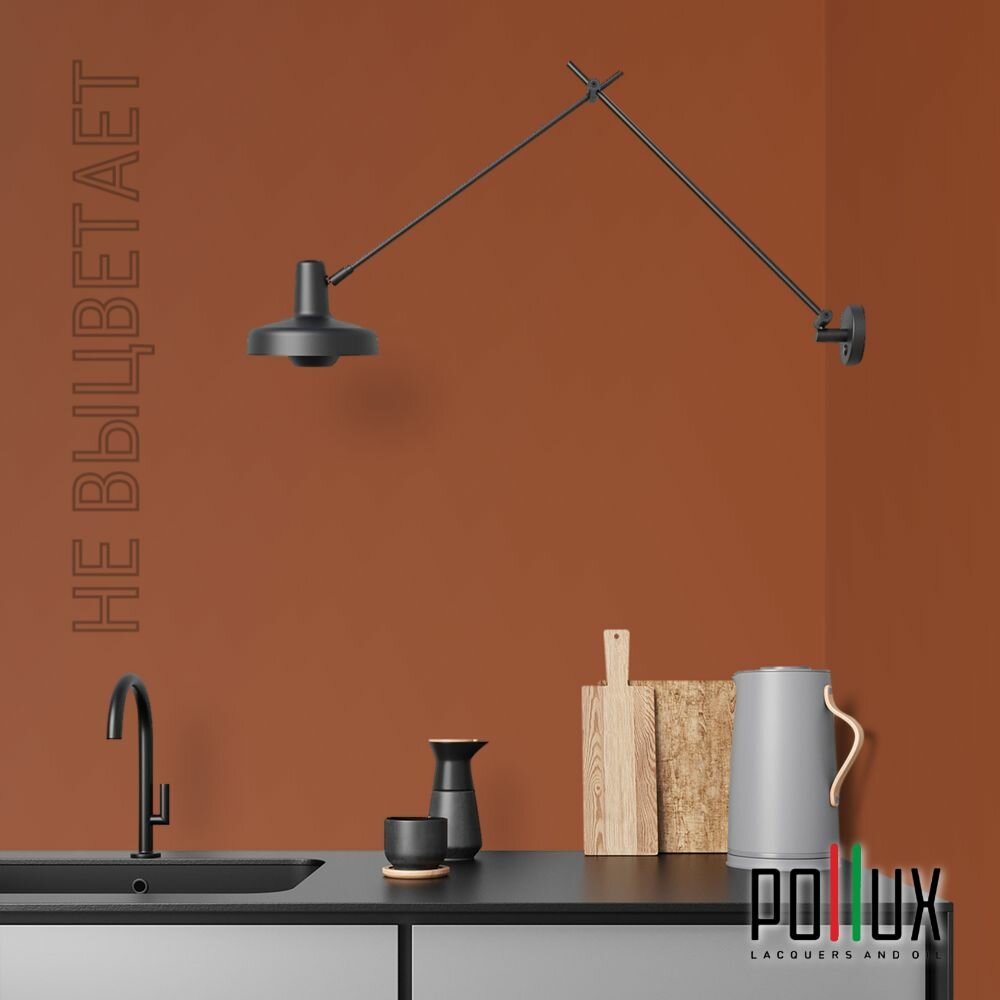 Краска моющаяся интерьерная для стен и потолков, Pollux INTERIOR без запаха, быстросохнущая, акриловая, матовое покрытие, цвет NCS S 0585-Y60R, 1л.