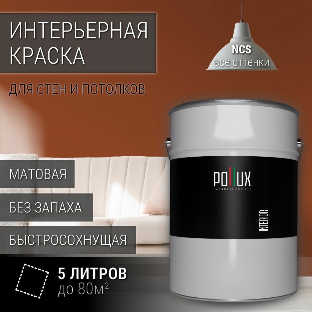 Краска моющаяся интерьерная для стен и потолков, Pollux INTERIOR без запаха, быстросохнущая, акриловая, матовое покрытие, цвет NCS S 7020-Y60R, 5л.