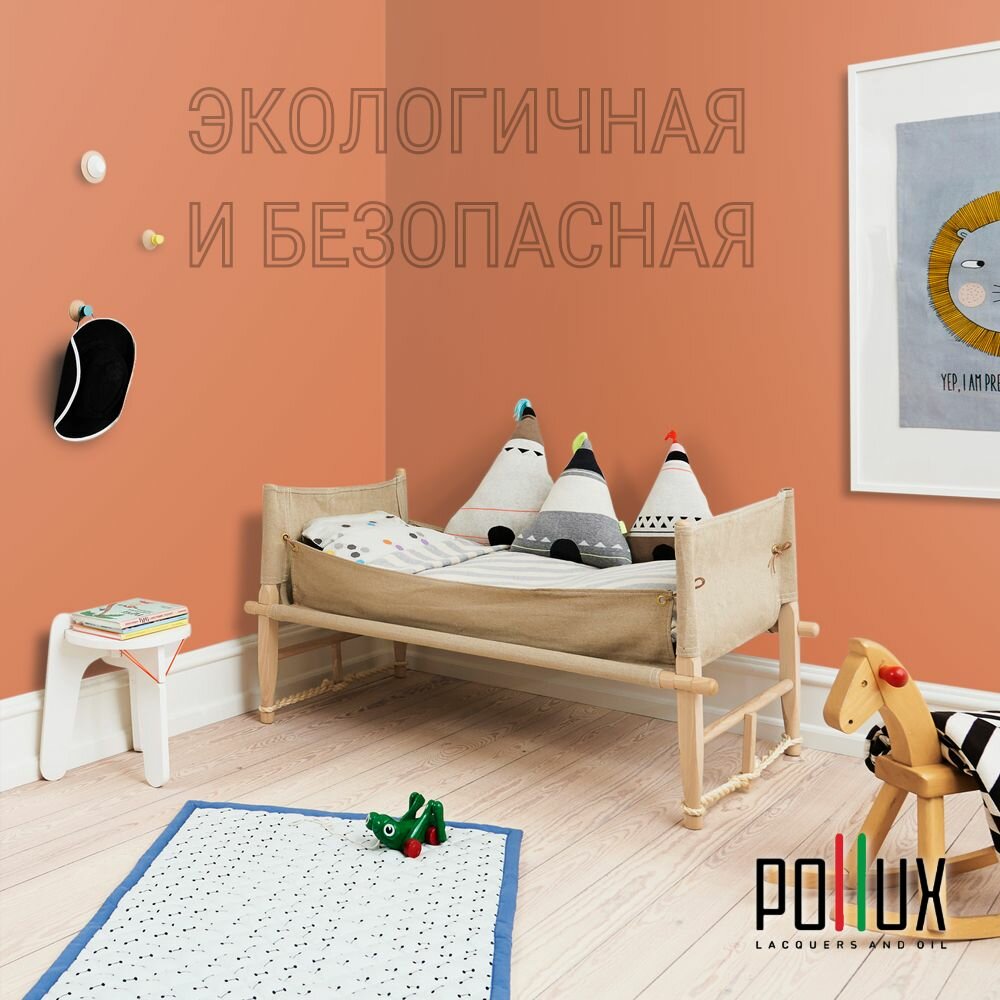 Краска моющаяся интерьерная для стен и потолков, Pollux INTERIOR без запаха, быстросохнущая, акриловая, матовое покрытие, цвет NCS S 3020-Y60R, 1л.