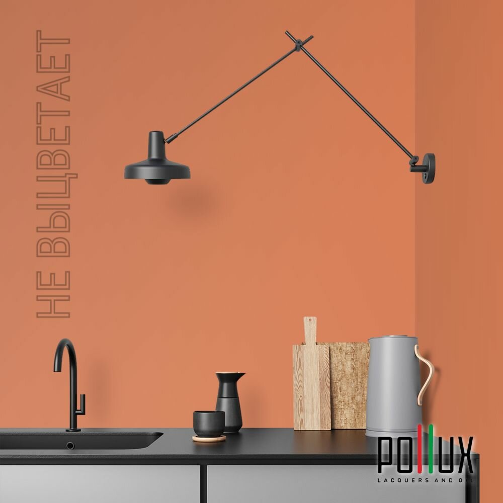 Краска моющаяся интерьерная для стен и потолков, Pollux INTERIOR без запаха, быстросохнущая, акриловая, матовое покрытие, цвет NCS S 0585-Y60R, 1л.