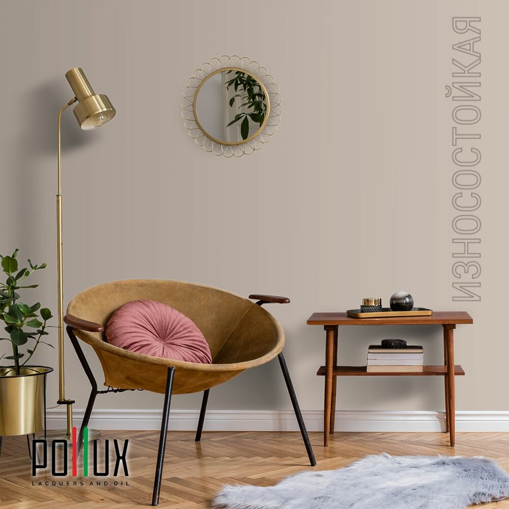 Краска моющаяся интерьерная для стен и потолков, Pollux INTERIOR без запаха, быстросохнущая, акриловая, матовое покрытие, цвет NCS S 7020-Y60R, 1л.